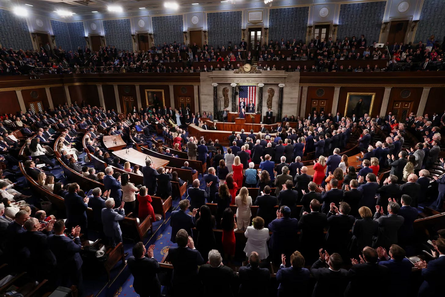 The Democrats stood for nothing last night. When Trump touted the most secure border in the last 40 years, the Democrats remain seated. When he said fentanyl deaths have been cut in half and the murder rate is at 125 year low, the Democrats remain seated. When he said that inflation has been reduced under 1.7%, mortgage rates are down, and gas prices are down, the Democrats remain seated. When the President touted job growth and economic growth, the Democrats remain seated. They didn’t stand for war heroes; they didn’t stand for the guy who saved 164 little girls from a flood; they didn’t even stand for lower prescription drug prices. And they definitely refused to stand for making our elections more secure.